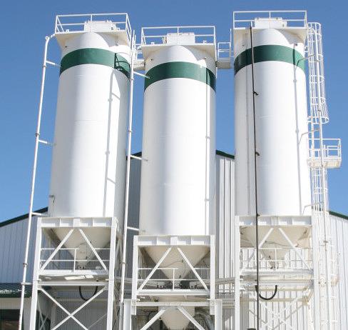 Six 180 ton vertical pig silos with RAB 1700 Central Dust Collection System